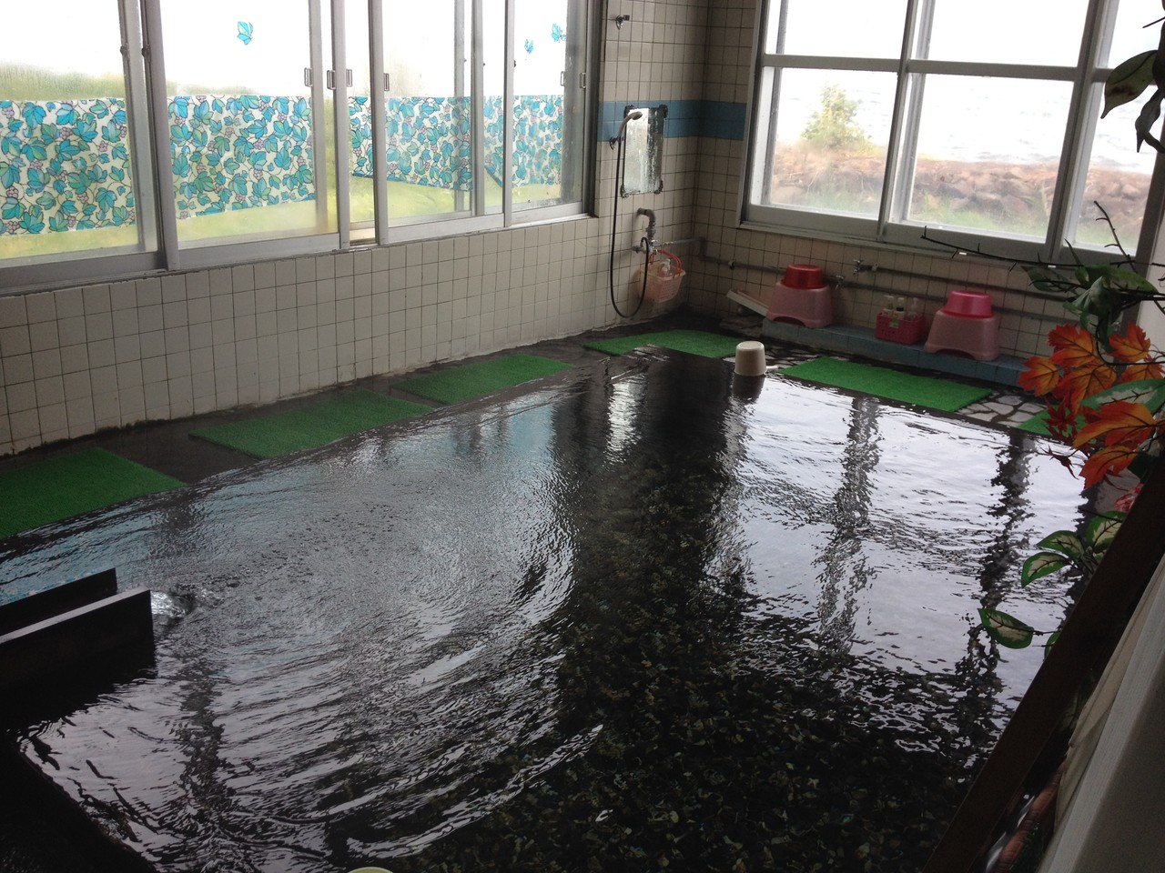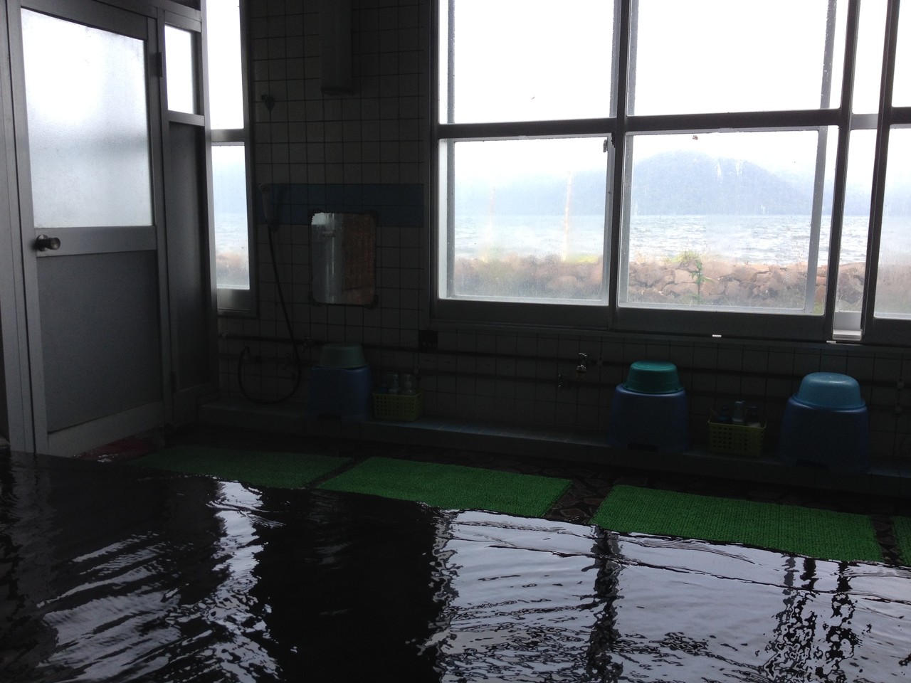 露天風呂は湖畔に沿った内湯で玉砂利の床で有名です。