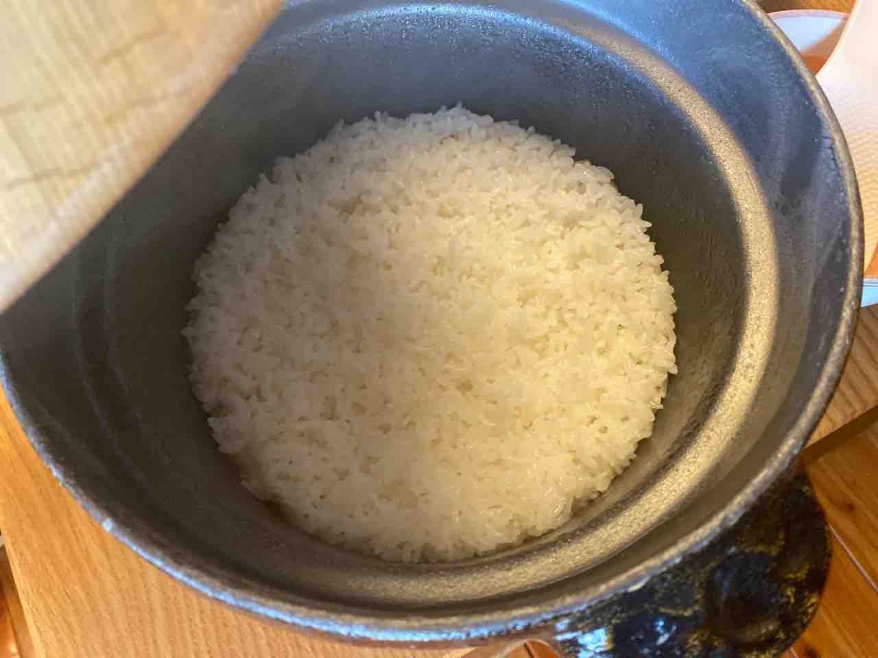 ご飯は昨日と同じ、炊き立ての釜。