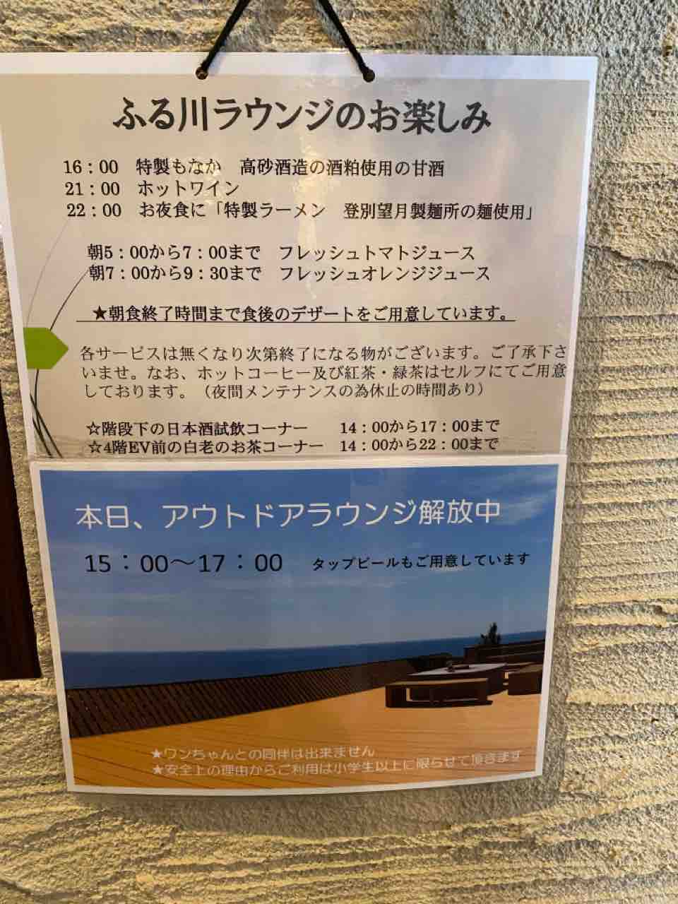 アウトドアラウンジを後にしてエレベーターに乗ろうとすると昨日はなかった新たな張り紙が。