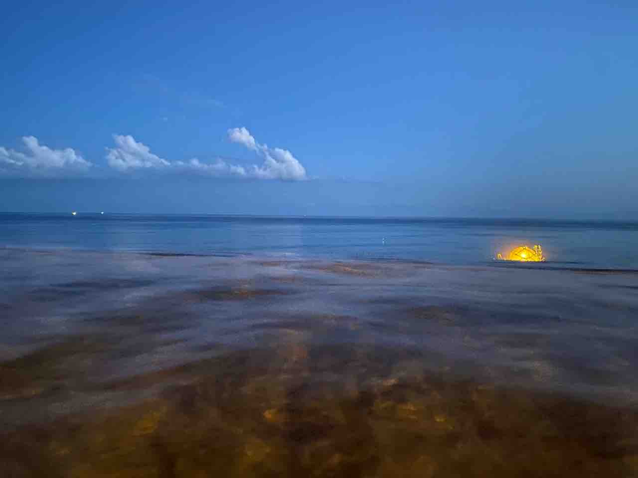 遠くにイカ釣り漁船が。
