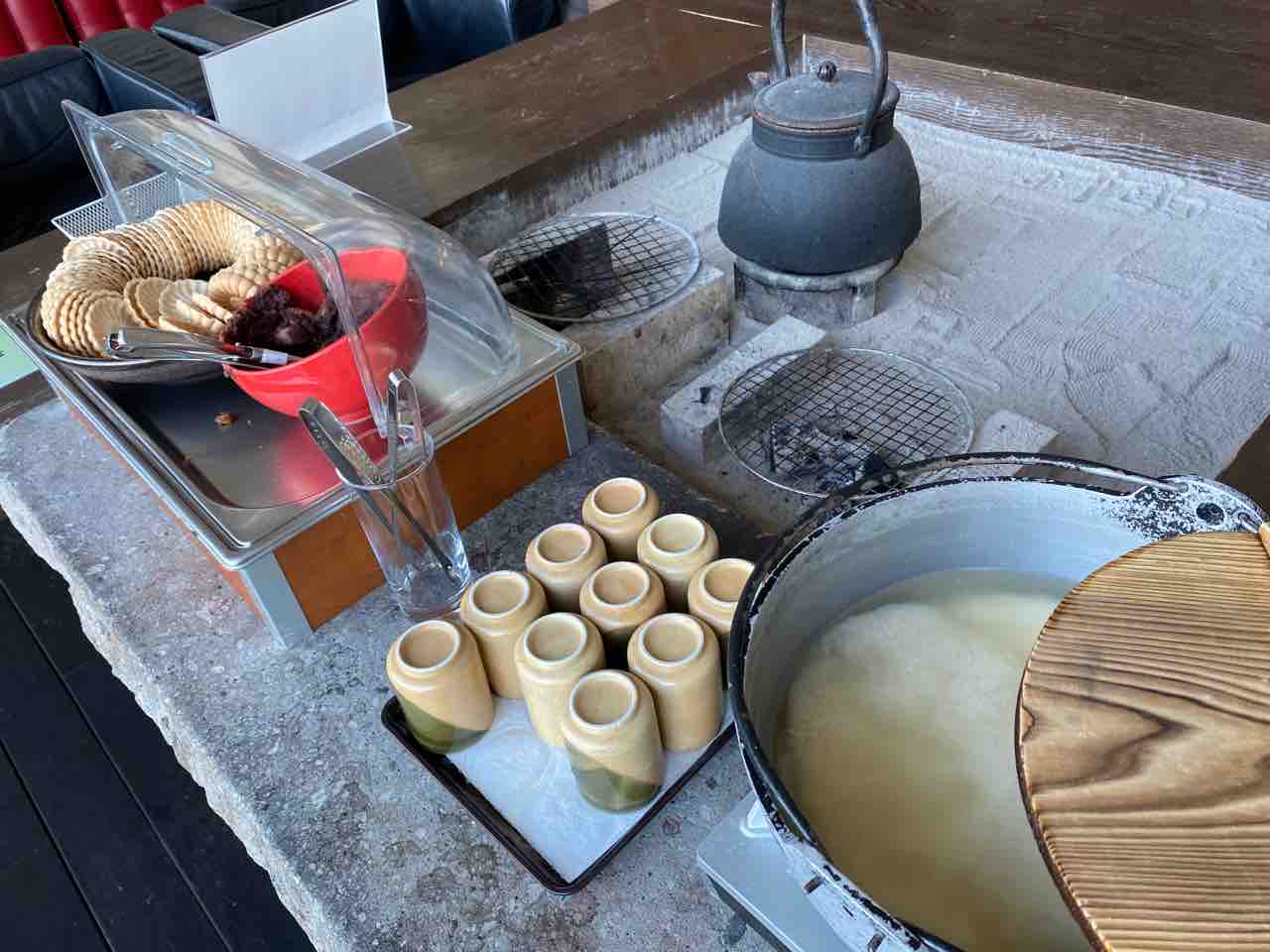 ラウンジ、16時からのおやつタイムや夜食のとんこつラーメンなどは昨日と変わらず。
