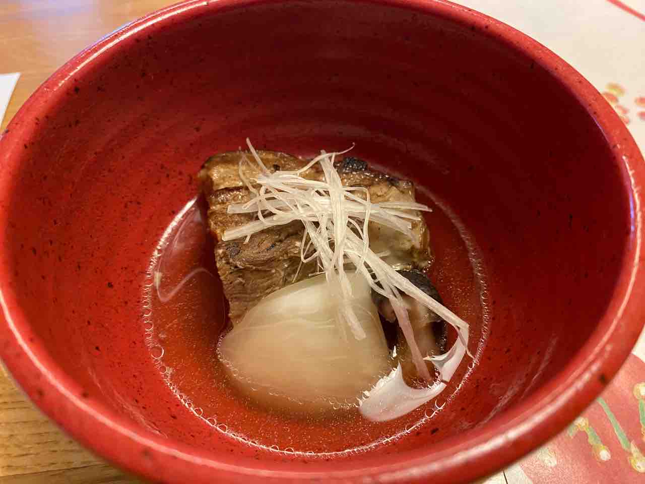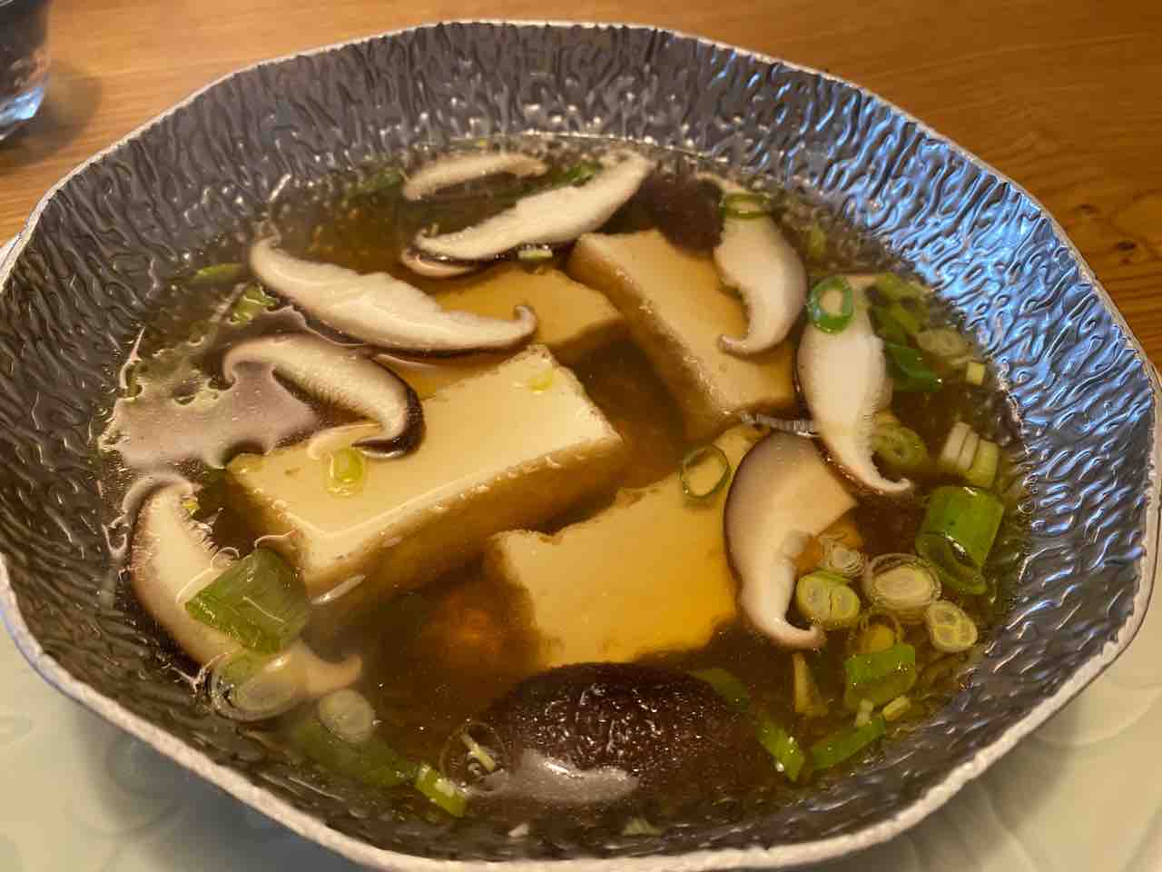 追って、厨房のお兄さんが礼儀正しく厚揚げの出汁湯豆腐を持ってきてくれました。