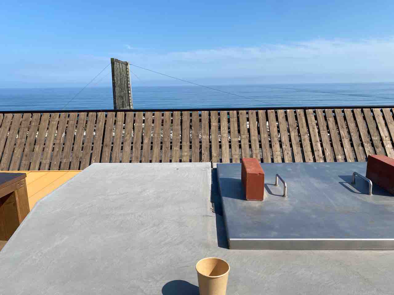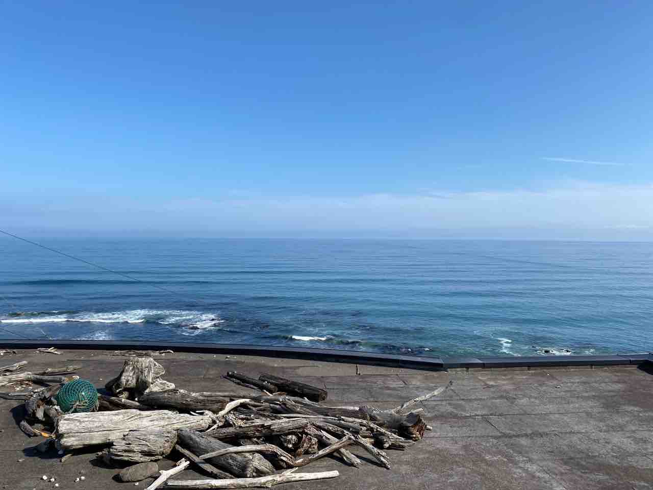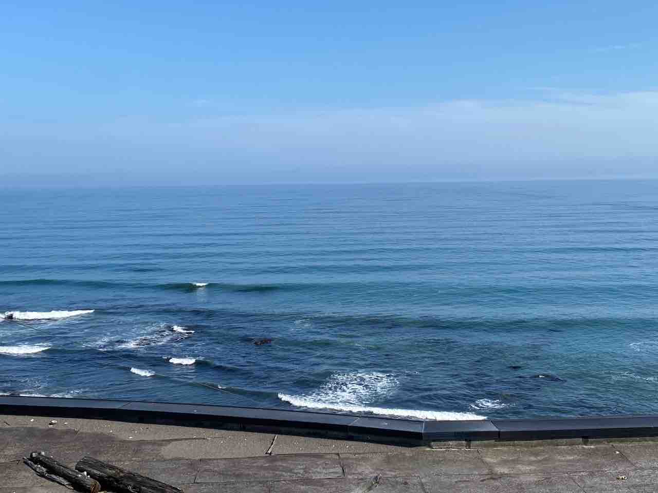 ↑ このような足湯にも浸かりながら海を見ることができました。