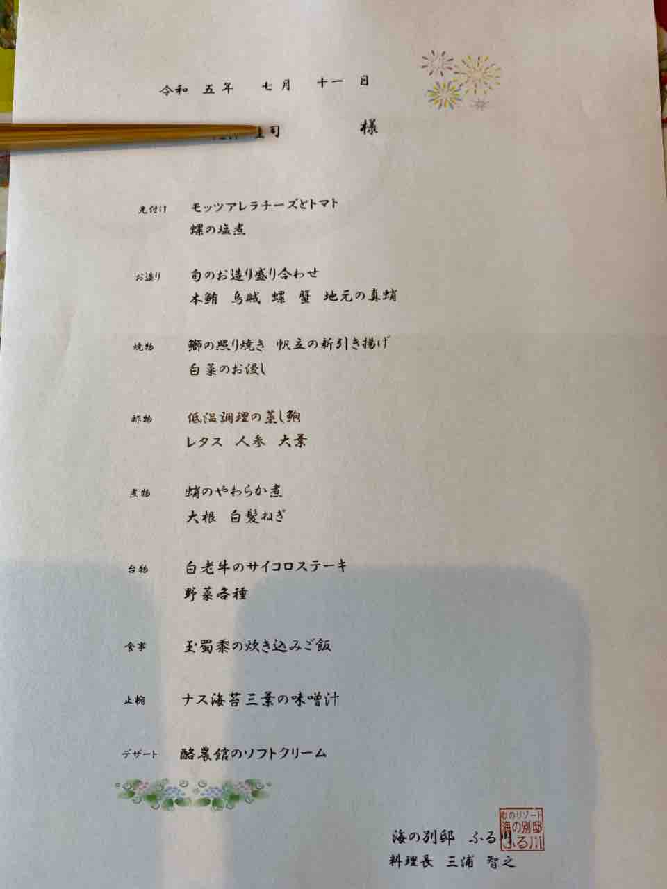 前回の海の別邸ふる川 2泊目の記事はこちら
